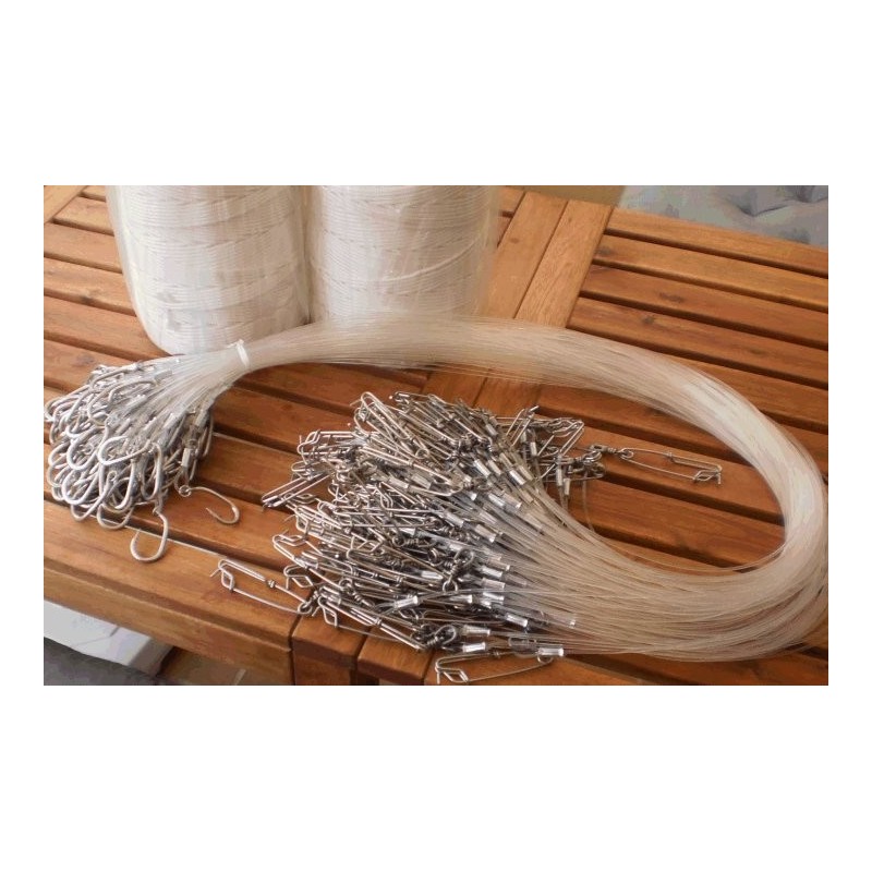 Stainless hook with ring 3.6" - 110cm mono 1.8mm with clip 80mm pack of 100
