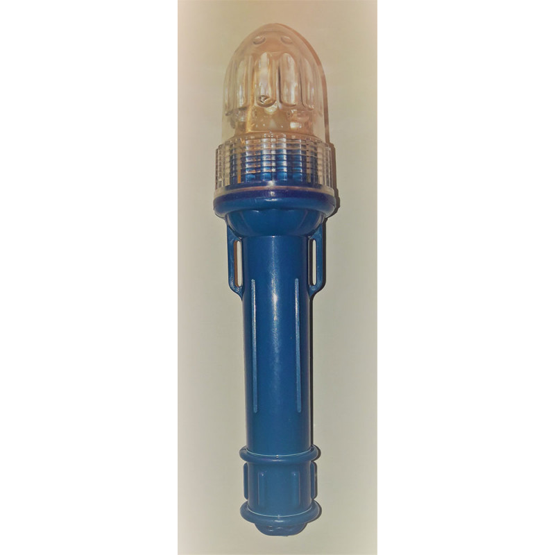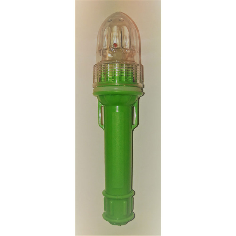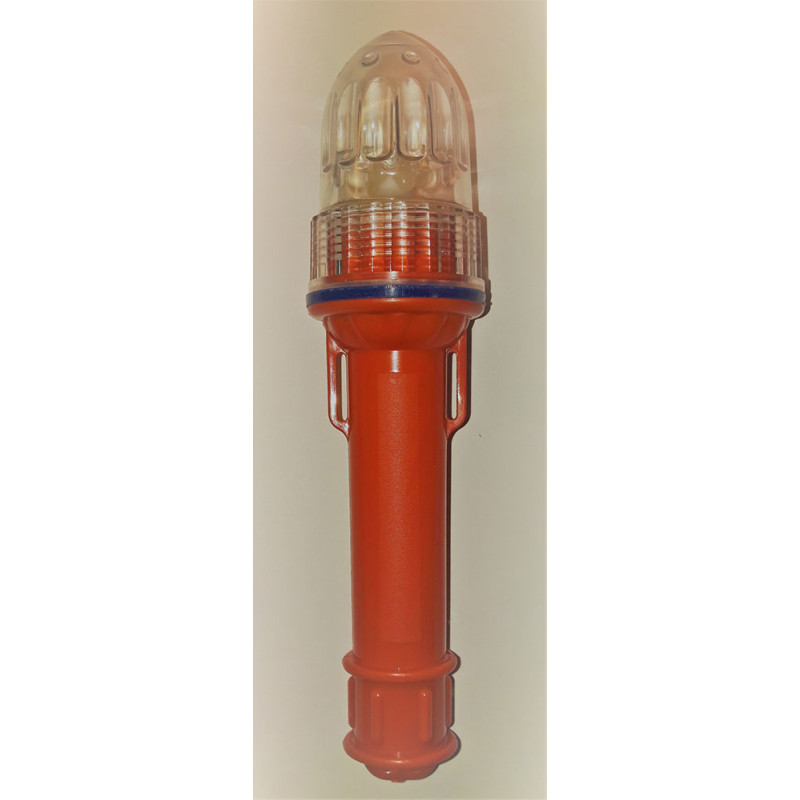 Red, blue, green or white flash, 3 km. visibility at night, with photocell (only works at night) Waterproof. 2 x AA batteries provide light at 300 night hours.